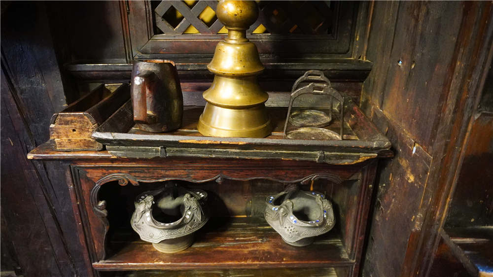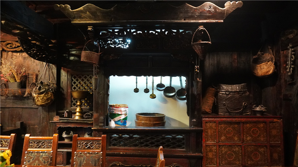 “这里的火塘、佛龛、藏柜、各种陶制的罐子、装酥油的盒子、水瓢、熏黑的实木柜子,甚至是地板,都是从香格里拉以前的藏族人家中回购后搬来的,重新安置在这里,连一颗多余的钉子都没用。这里的一切都与我香格里拉的老家一模一样。在我眼里,它不只是一个包间,更是我们的家。”