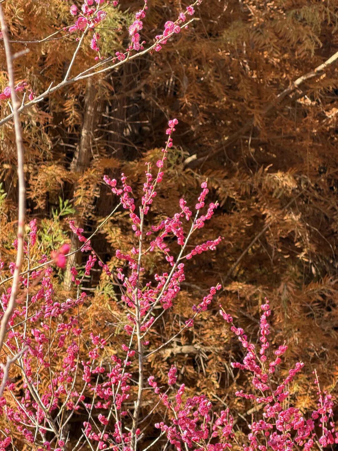 1.梅林坡地:骑行至坡顶俯拍,可收近处梅枝、中间绿道、远处滇池西山与鸥群于同一画面。清晨逆光下,花瓣透亮如蝶翼,偶有鸥鸟掠过枝头,动静交织。