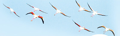 火烈鸟在江苏省东台市条子泥湿地上空飞翔。孙家录摄(新华社发)