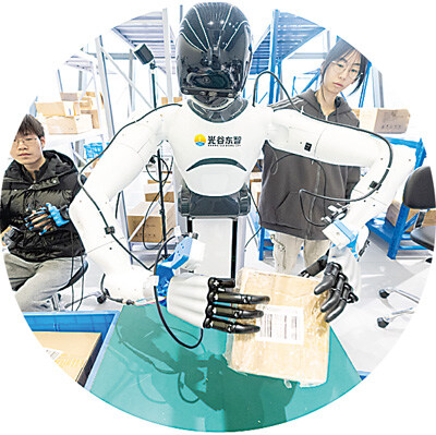 在湖北人形机器人创新中心,人形机器人在进行仓库搬货场景数据采集。新华社记者 肖艺九摄