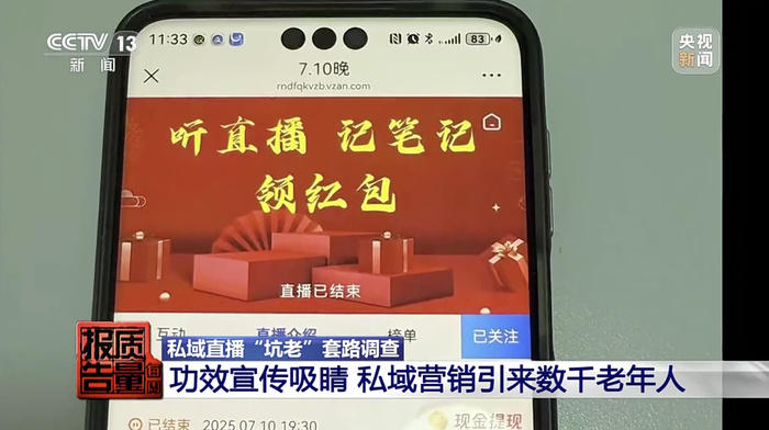 私域直播“坑老”套路全拆解:免费鸡蛋引流 高价“神药”收割