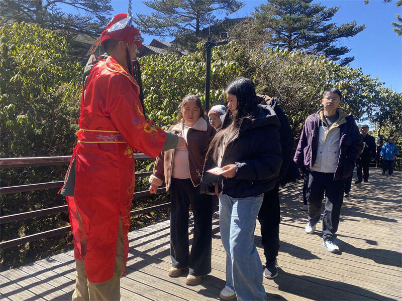 昆明轿子山“第七届冰雪嘉年华·新春特辑”中,登高祈福、户外滑雪、雪山市集等项目深受欢迎。夜爬活动吸引游客在星空下登顶迎日出,开启新一年的美好征程。财神巡游派发福袋,营造出浓浓的新春氛围。