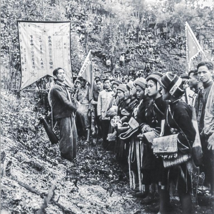1950年8月30日,各族群众在欢迎大会上准备赠送锦旗(图片由云南民族博物馆提供)