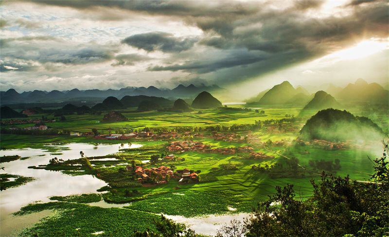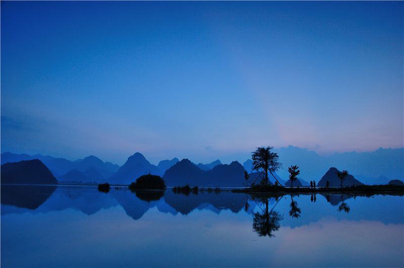 夏日初临,普者黑三百多座孤峰、五十多个湖泊,被无尽的新荷与芦苇染成青绿的世界。划一叶扁舟,穿行于溶洞暗河与明湖之间,水面如镜,倒映着峰林与流云,一时间竟分不清天地上下。这里是喀斯特地貌最诗意的表达,少了桂林的名气,多了几分野逸与静谧。船桨搅碎山影,惊起白鹭,远处传来彝族的歌谣。