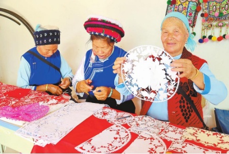 宾川非遗代表性传承人展示剪纸作品。 通讯员 邓永凤 摄