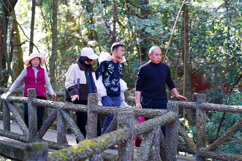 春日的狮子山箐谷幽深,林木葱郁,步入狮子山林间,绿荫蔽日,景致优美,一条条林间栈道曲折穿梭在密匝的茂林深处,别致的空中木质观景台,将林间草坪和山花湖光连成一体。走在栈道上,清风送爽,情思满溢,让人心旷神怡。