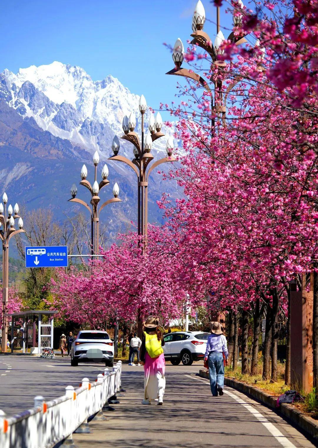 漫步在丽江市樱花大道上