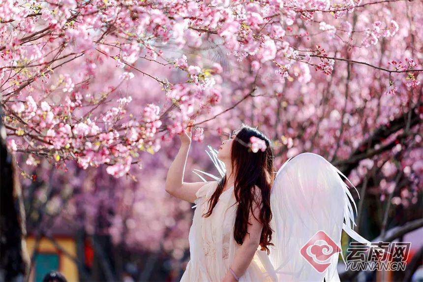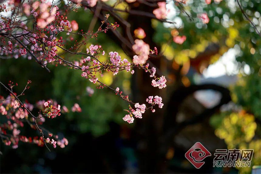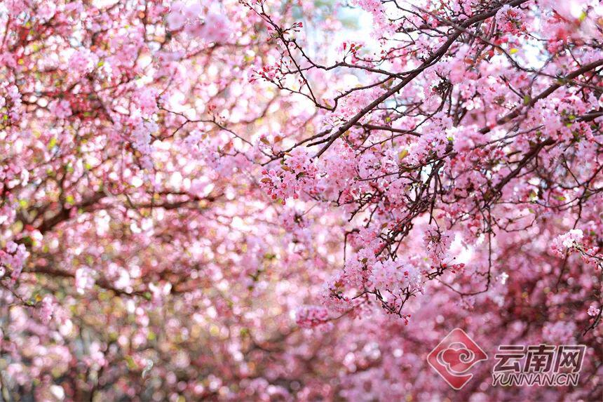 百余株云南樱花树上花团锦簇
