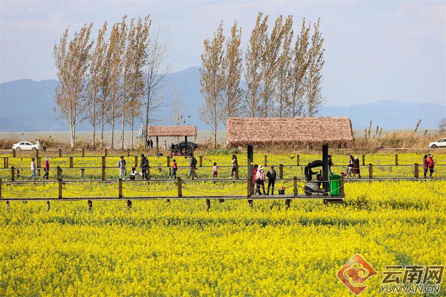 金色的花田点缀着滇池东岸