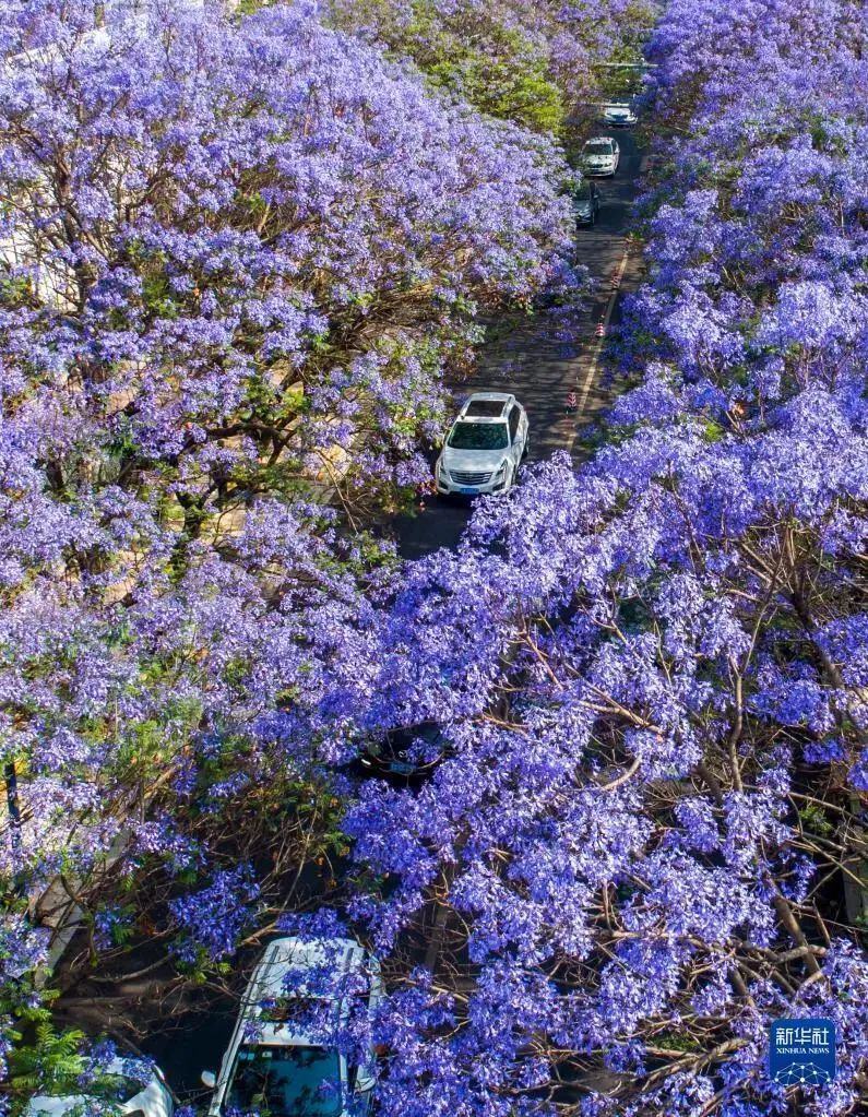 昆明教场中路的蓝花楹 图源:新华社 陈欣波 摄