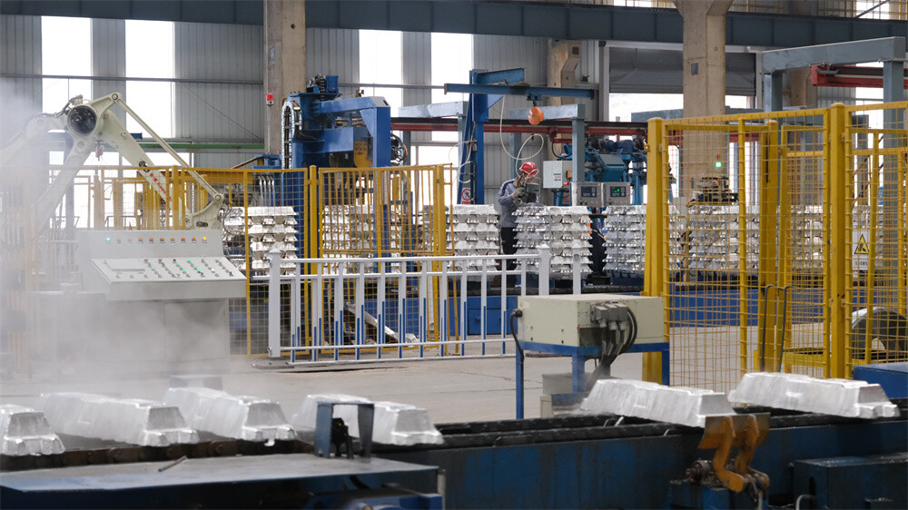 图说:铝锭生产线。 张文峰 摄