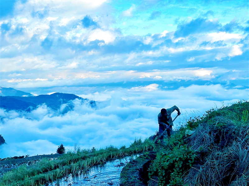 走进小镇,寻一家咖啡馆,一边享受生活的乐趣,一边远眺壮观的哈尼梯田,值此春耕时节,勤劳的哈尼人已经在田里劳作,一人一牛一犁,就是一幅生动的山水画。动静之间,哈尼梯田愈发迷人。