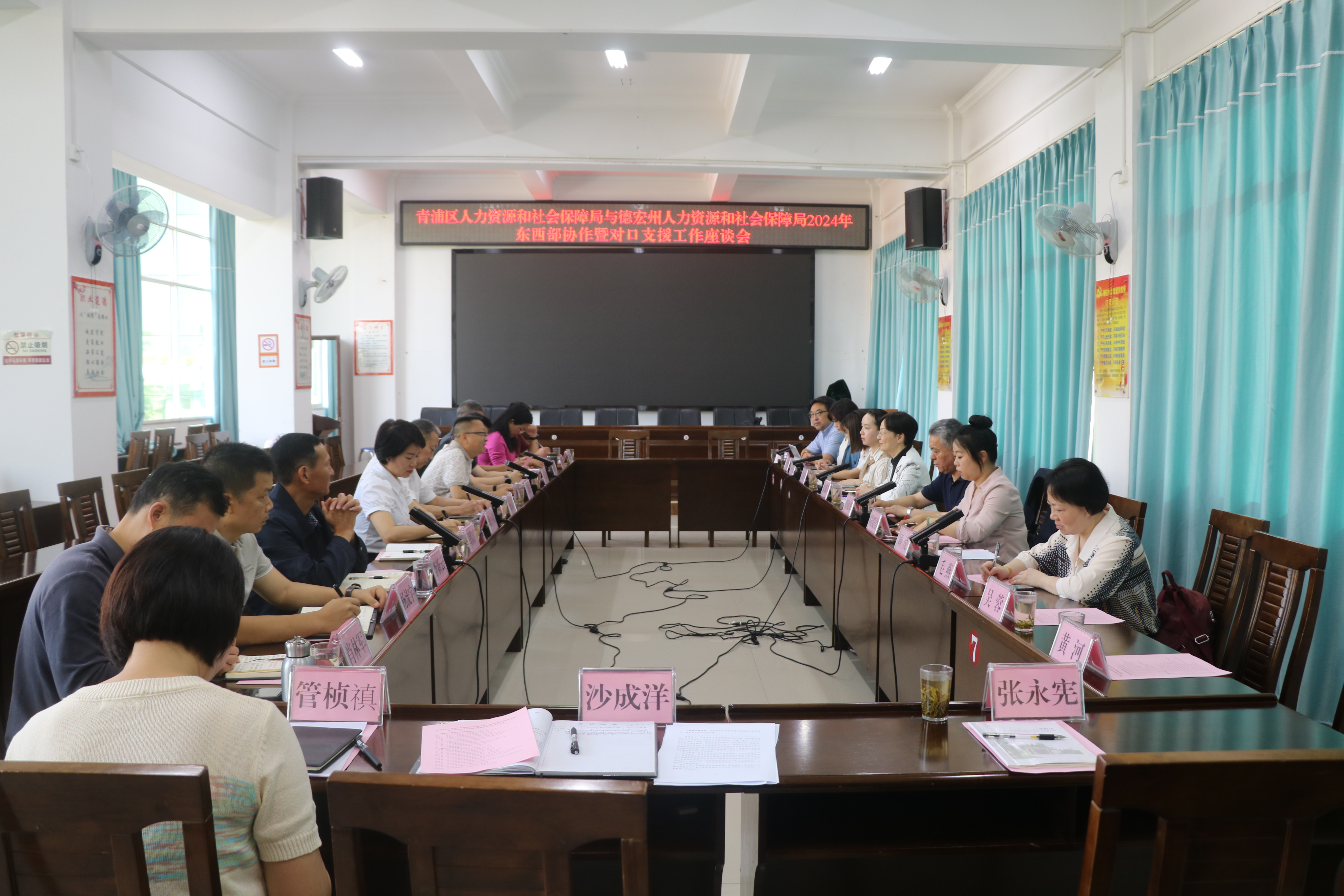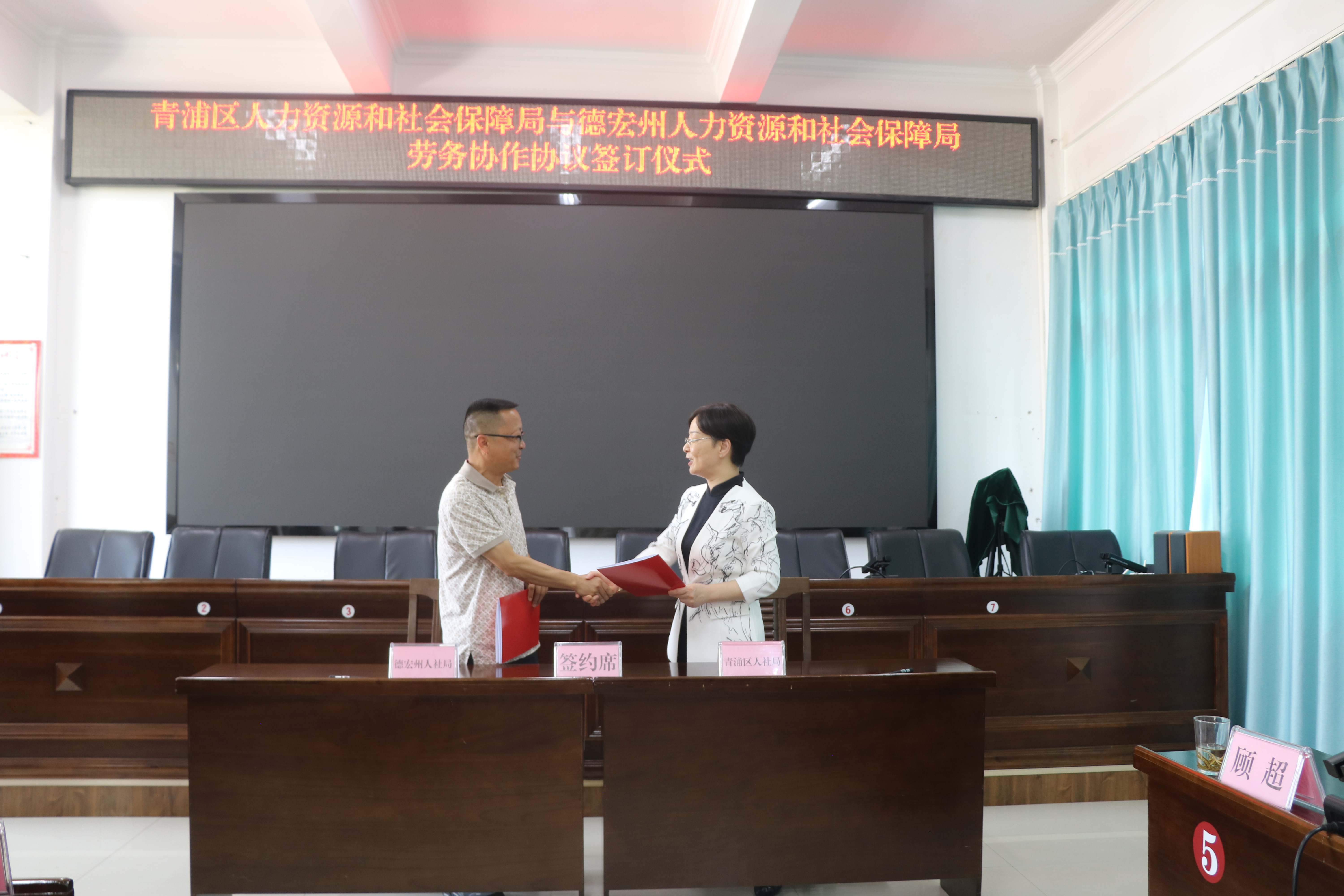 座谈会上,就开展劳务协作等相关工作进行了对接和商洽,,并签订了《青浦区人力资源和社会保障局与德宏州人力资源和社会保障局关于建立劳务协作关系的协议》。