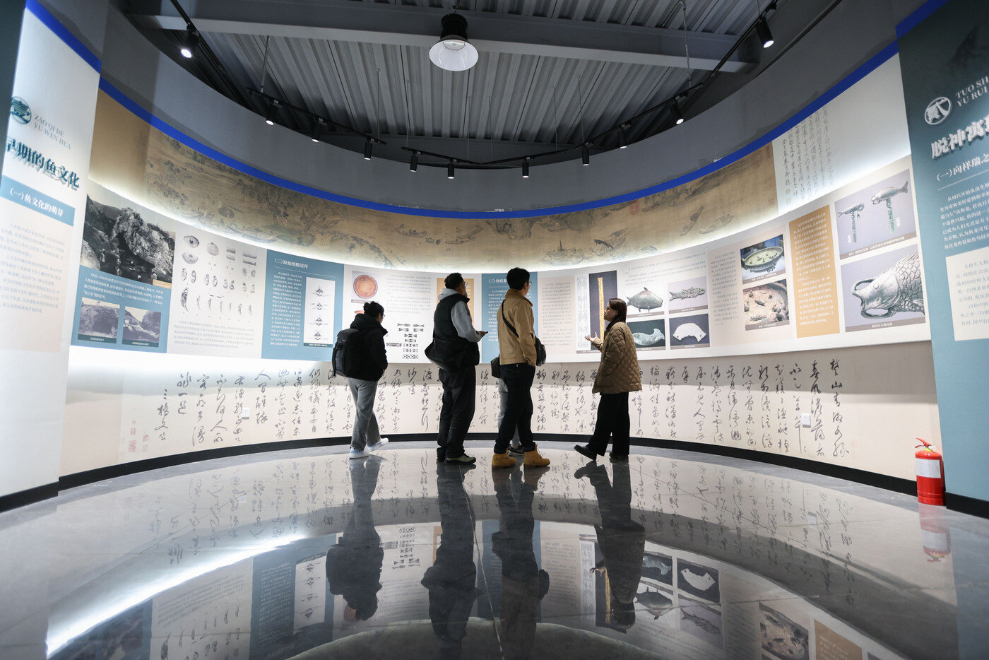 殷树茂的女儿正在基地内的中国鱼文化院,为参观群众讲解鱼文化。高吴双 摄